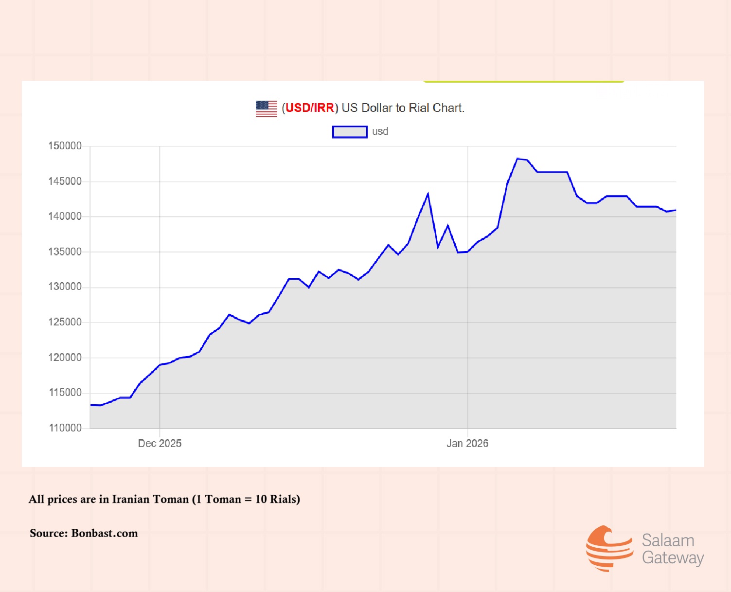 Iranian rial fell from 1.12 million to $1 on December 12 to 1.43 million to $1 on December 28. It traded at an all-time low of 1.48 million to $1 on January 6, according to Bonbast.com, a website which tracks live exchange rates in Iran’s free market.