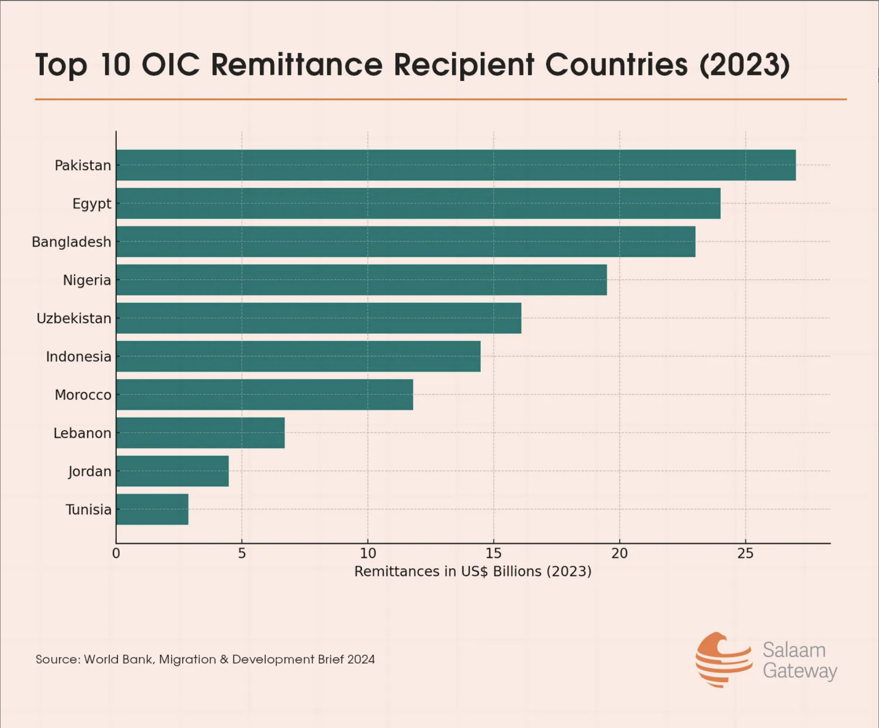 The following ranking identifies the Top 10 OIC remittance-recipient countries by volume, based on the most reliable data for the calendar year 2023, and it also shows the emerging trend for 2024.